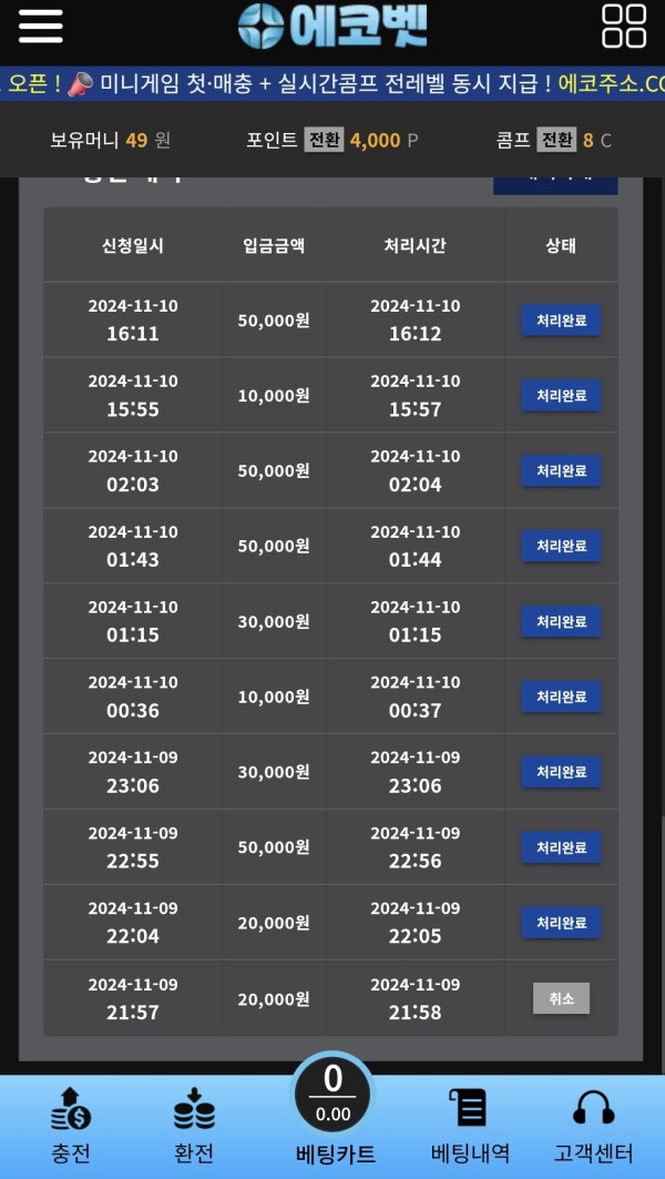 와 에코벳 진짜 이벤트가 너무 달달해서 매일매일 꽁머니 받고있네요 많이 따지는 못했어도 이거 진짜 장난없는 사이트인게 충전할수록 더더 좋아져요 사이트가 님들도 해보셈