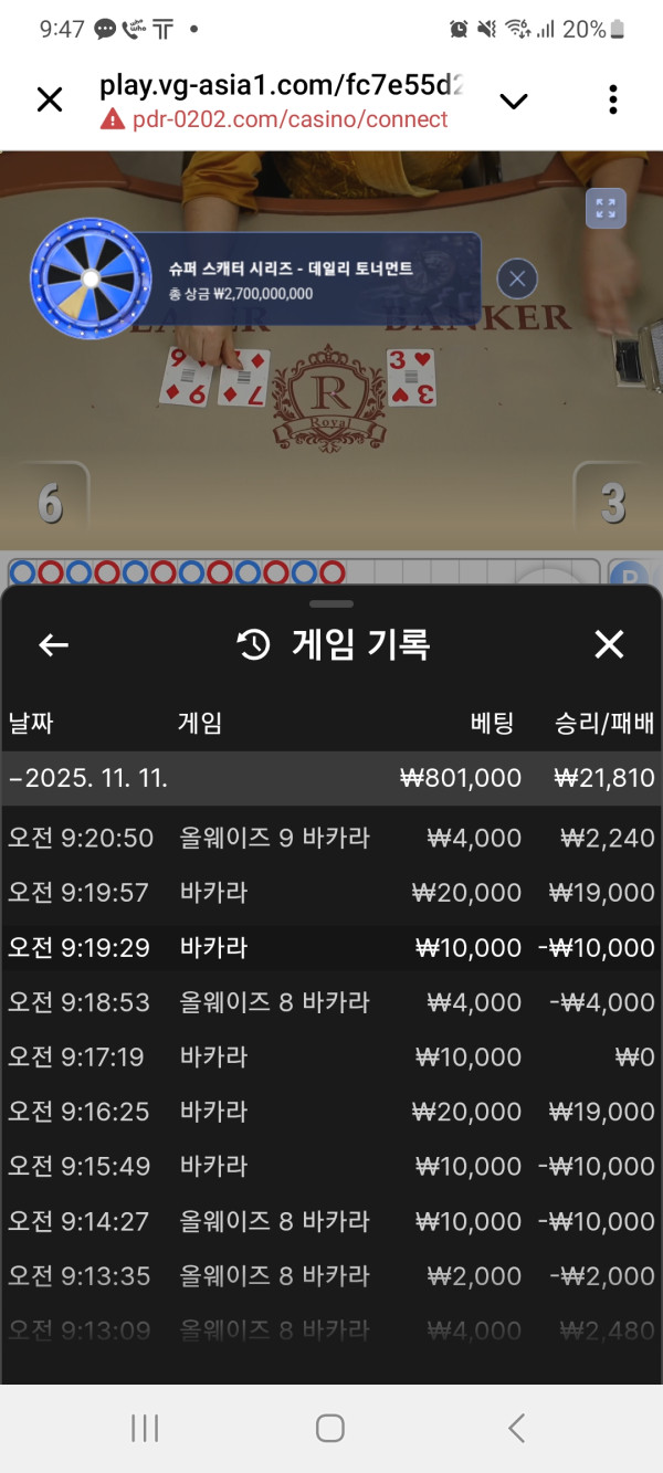 1차벳. 오링 2차벳 복귀뒤 욕심으로 사망
