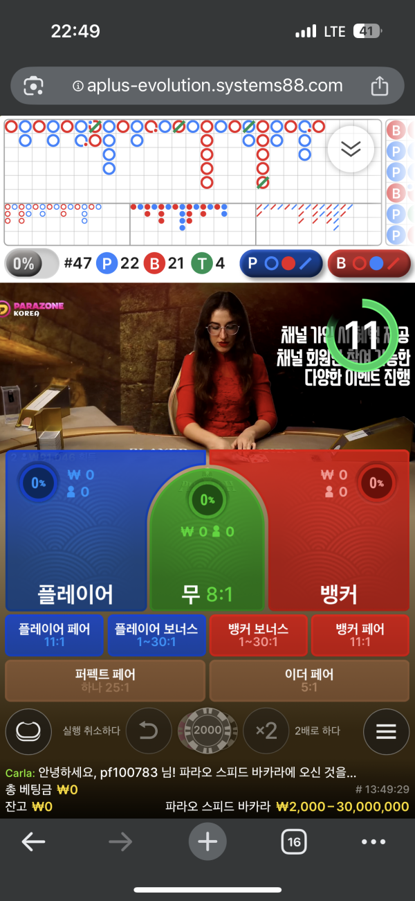 제가 했을 땐 최소 ₩2,000부터 최대 ₩30,000,000까지 베팅 가능했는데,