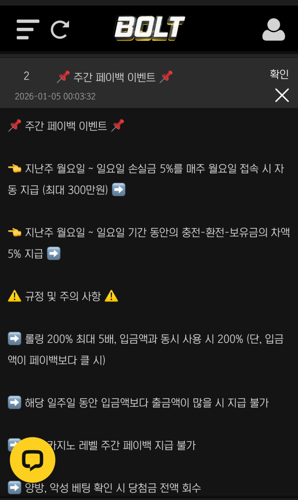 볼트에서는 페이백 해줍니다 형님들