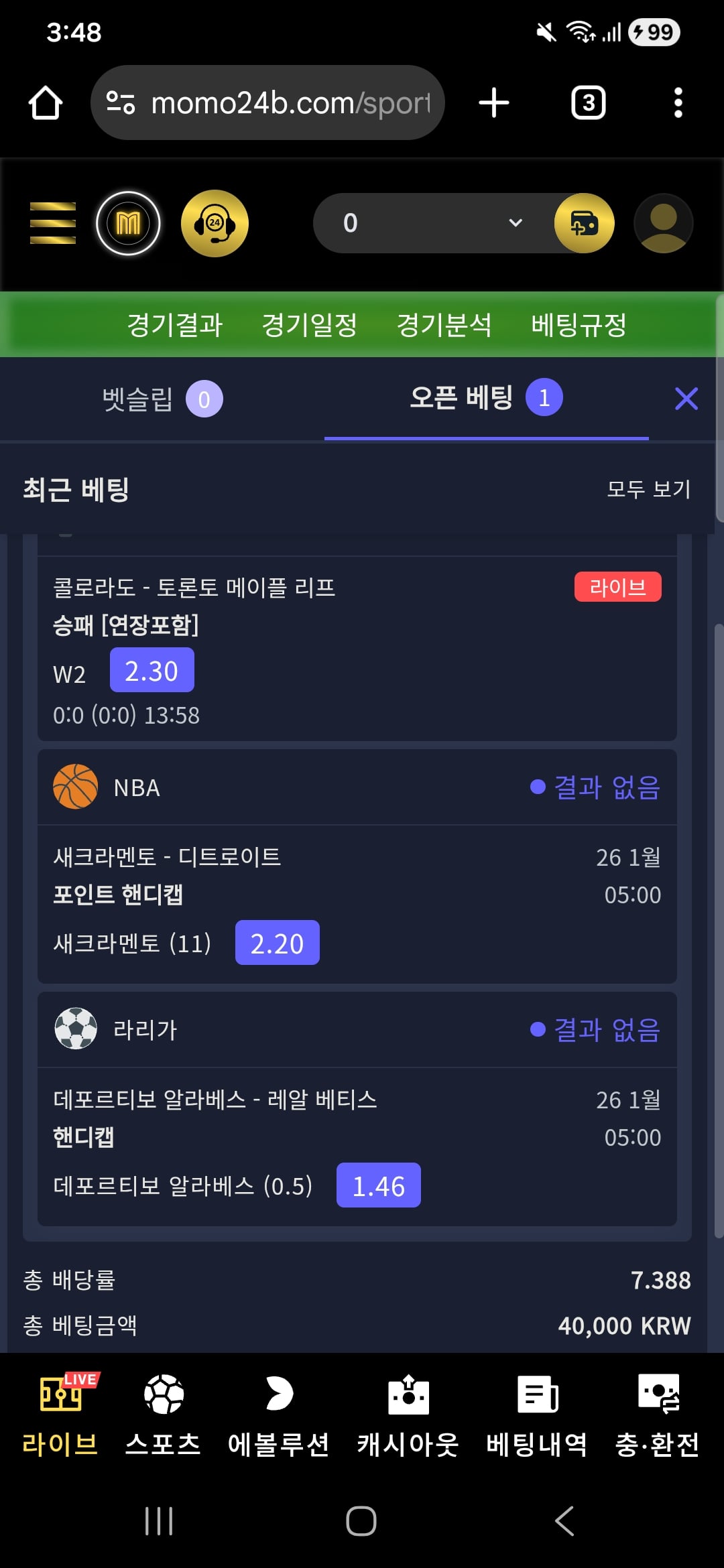 스포츠 실시간 이용해보세요 캐시아웃으로
