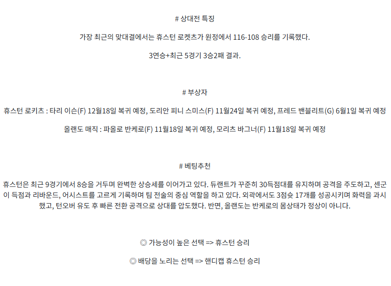 휴스턴 로켓츠 : 올랜도 매직