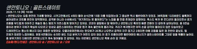샌안토니오 : 골든스테이트