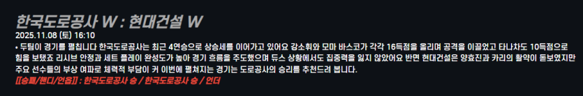 한국도로공사 W : 현대건설 W