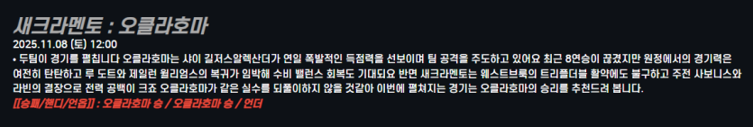 새크라멘토 : 오클라호마