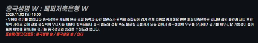 흥국생명 W : 페퍼저축은행 W