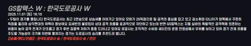 GS칼텍스 W : 한국도로공사 W