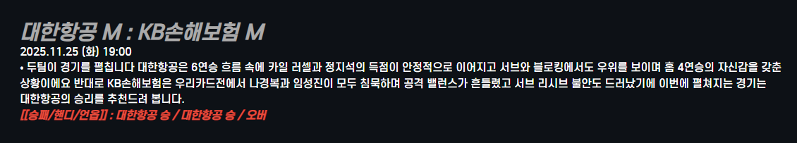 대한항공 M : KB손해보험 M