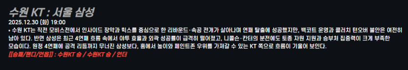 수원 KT : 서울 삼성