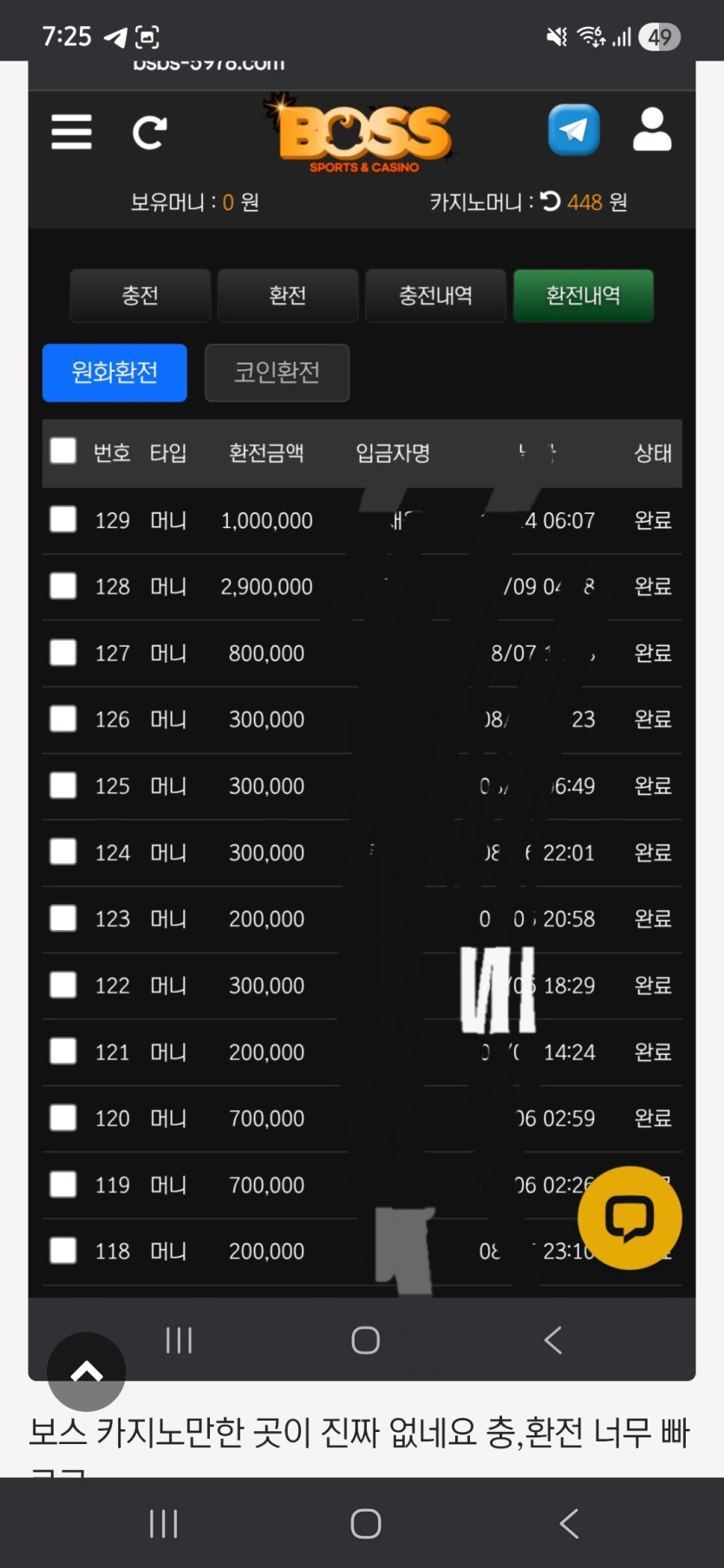 오랜만에 복귀해서 즐겼습니다. 보스 토토는 확실히 사대가 맞는것 같아요ㅎㅎ 입금,출금 너무 빠르구요 운영진 분들 너무 친절하시네요