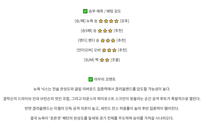 뉴욕 닉스 : 클리블랜드 캐벌리어스