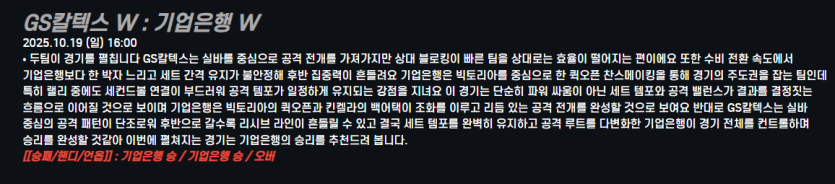 GS칼텍스 W : 기업은행 W