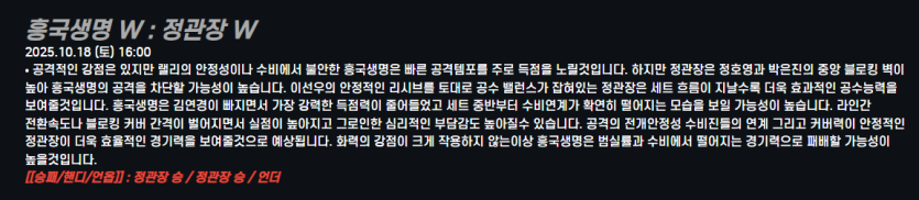 흥국생명 W : 정관장 W