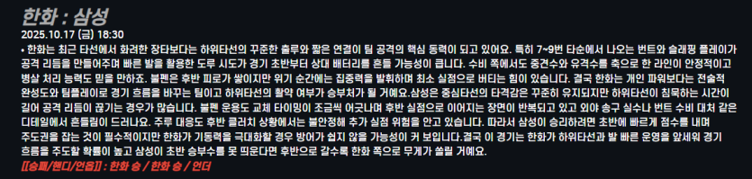 한화 : 삼성