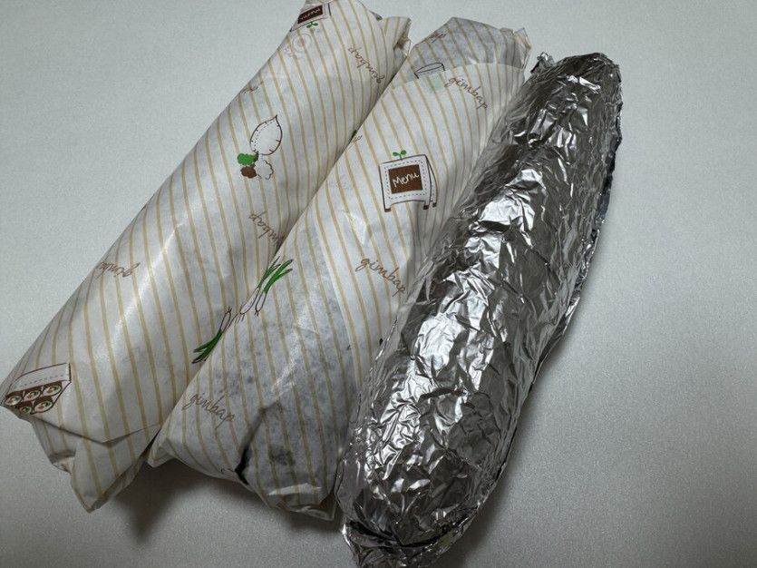 김밥집에서 김밥을 사 먹었습니다 치즈김밥이랑 멸추김밥...200 넘게 잃어서