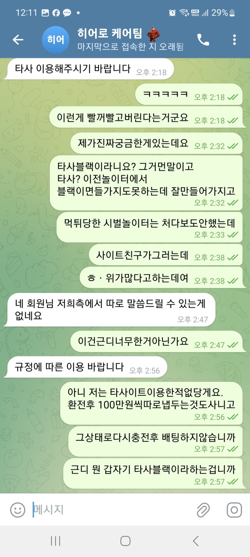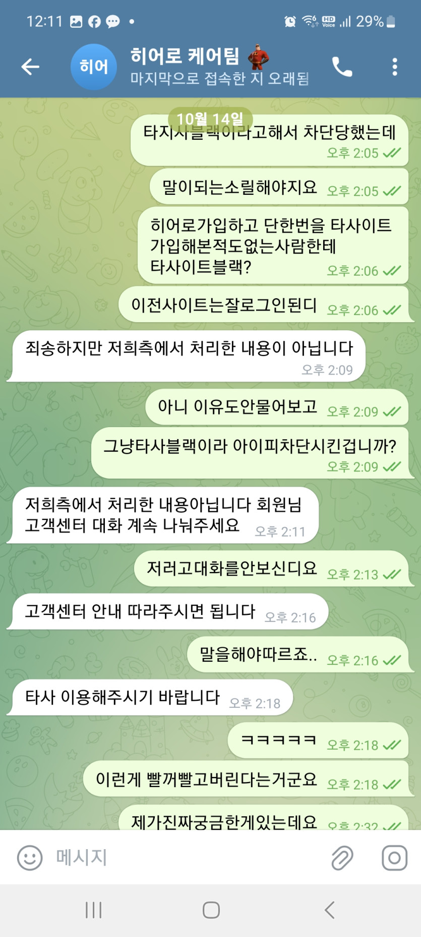 대꾸조차없이 그냥 지들맘에안들면 텔레도차단하는 곳입니다.