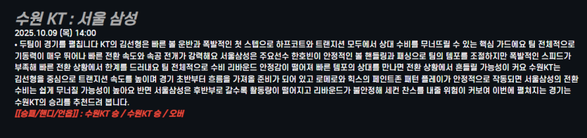 수원 KT : 서울 삼성
