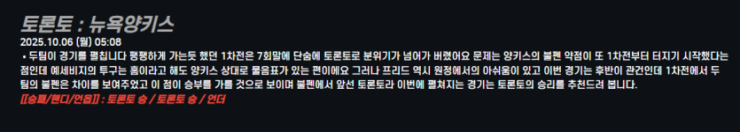 토론토 : 뉴욕양키스