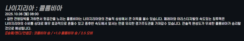 나이지리아 : 콜롬비아