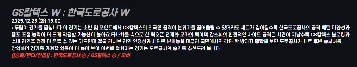GS칼텍스 W : 한국도로공사 W