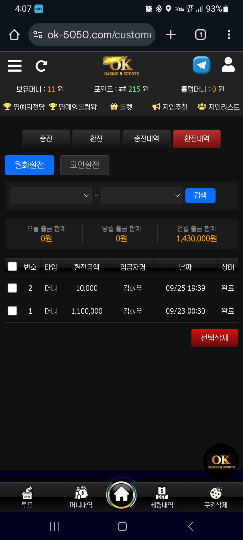 오늘도역시나출 다털리고 멘붕 ㅠㅠㅋㅋㅋㅋ언제쯤환전가능핮니까 다들맥건승 이벤트좋은 ok카지노로오세용
