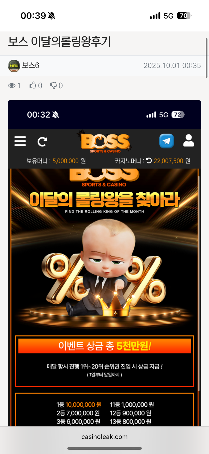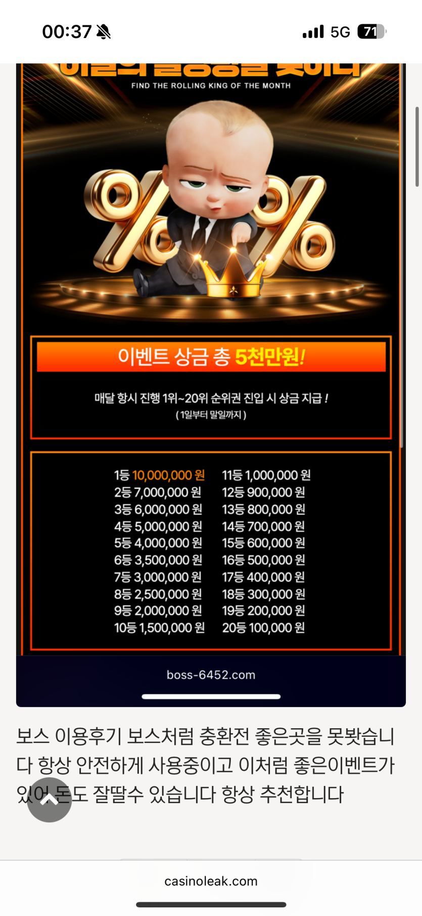 보스 이달의롤링왕 후기