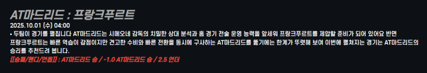 AT마드리드 : 프랑크푸르트