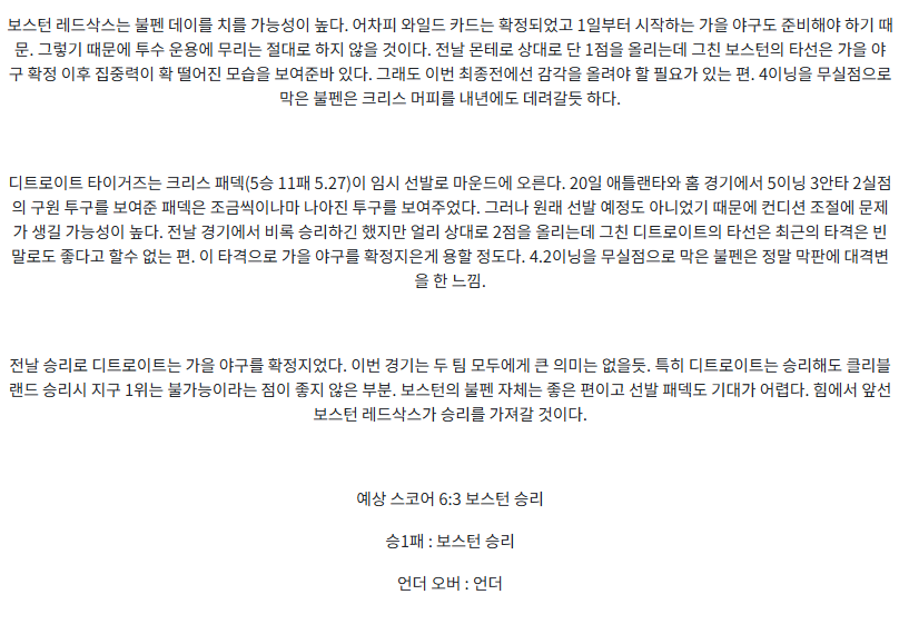 보스턴 : 디트로이트