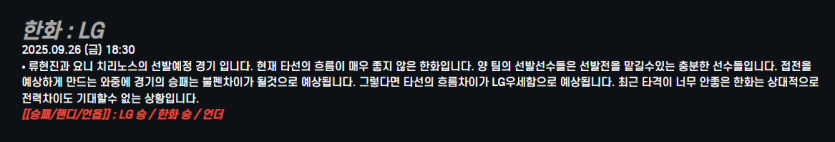 한화 : LG