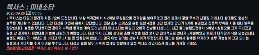 텍사스 : 미네소타