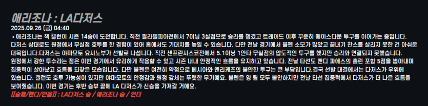 애리조나 : LA다저스