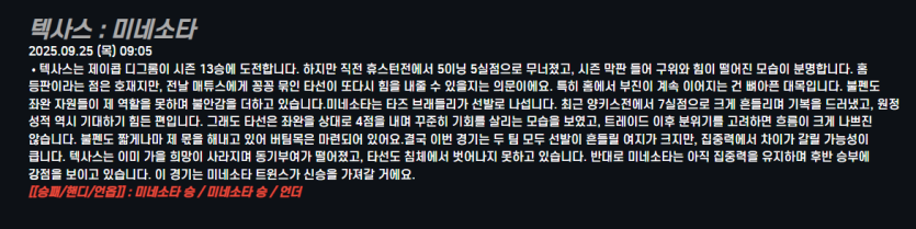 텍사스 : 미네소타