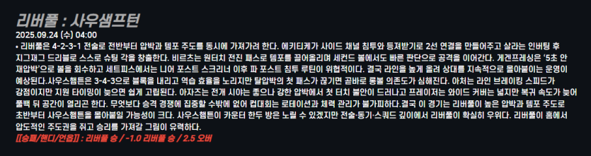 리버풀 : 사우샘프턴