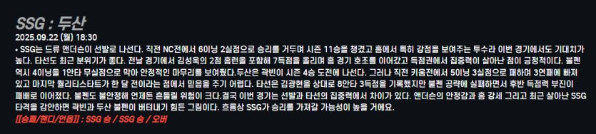 SSG : 두산