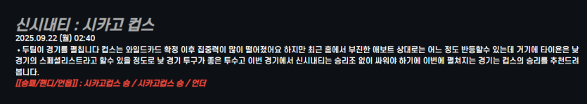 신시내티 : 시카고 컵스