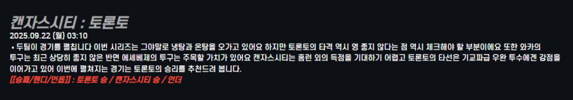 캔자스시티 : 토론토