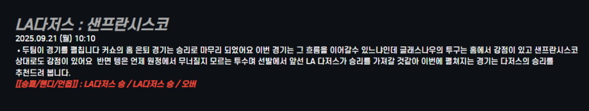 LA다저스 : 샌프란시스코