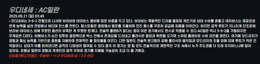 우디네세 : AC밀란