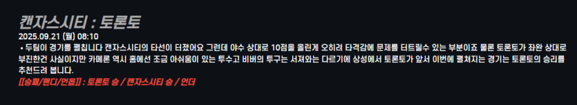 캔자스시티 : 토론토