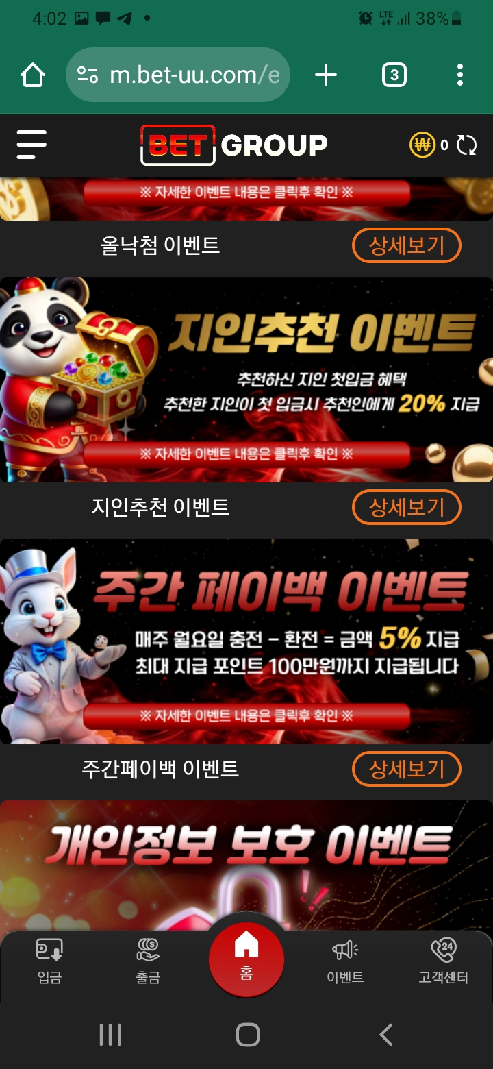 빠른 충환전은 기본이고요 이벤트만으로도 본전 복구 가능할정도로 이벤트가 수십가지