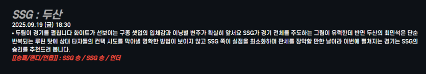SSG : 두산