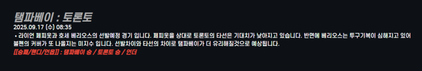 탬파베이 : 토론토