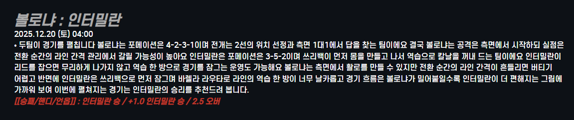 볼로냐 : 인터밀란