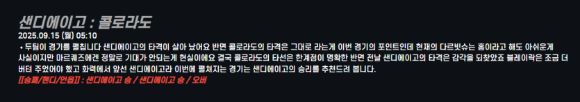 샌디에이고 : 콜로라도