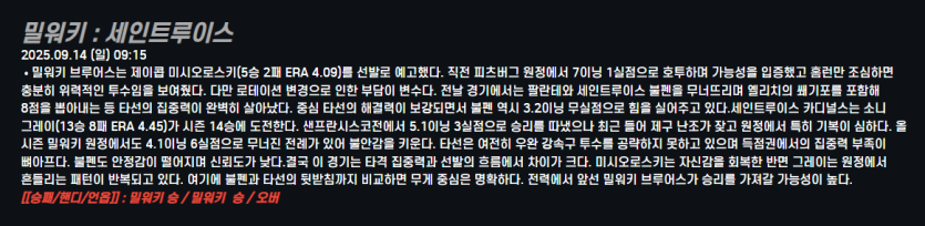 밀워키 : 세인트루이스