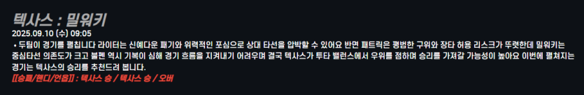 텍사스 : 밀워키