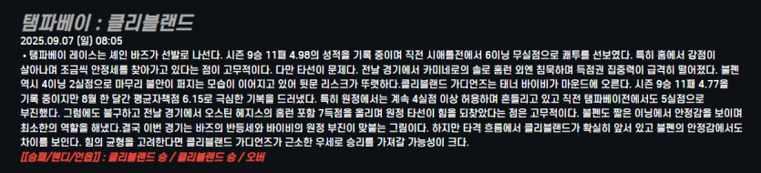 탬파베이 : 클리블랜드