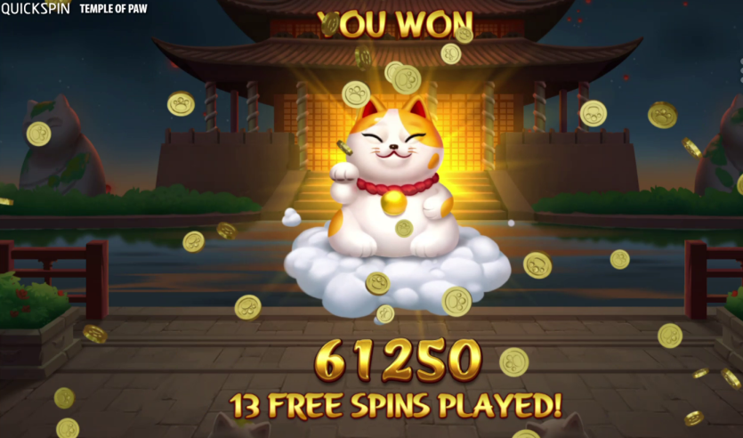 Quickspin Temple of Paw에서 귀여운 고양이가 잭팟