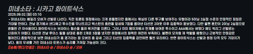 미네소타 : 시카고 화이트삭스