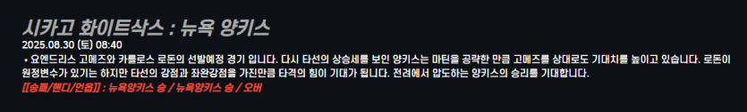 시카고 화이트삭스 : 뉴욕 양키스